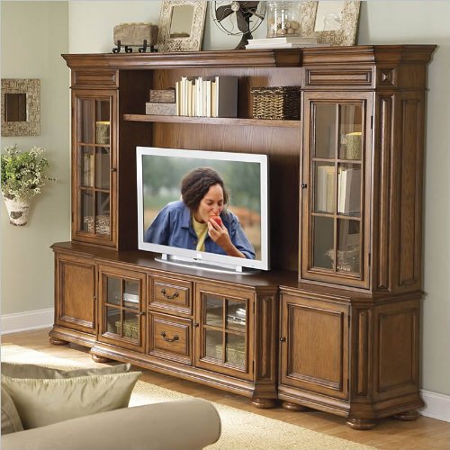 Riverside Furniture Seville Square Warm Oak 63 Inch TV Stand Entertainment Wall System for Sale - Review & Buy at Cheap Price